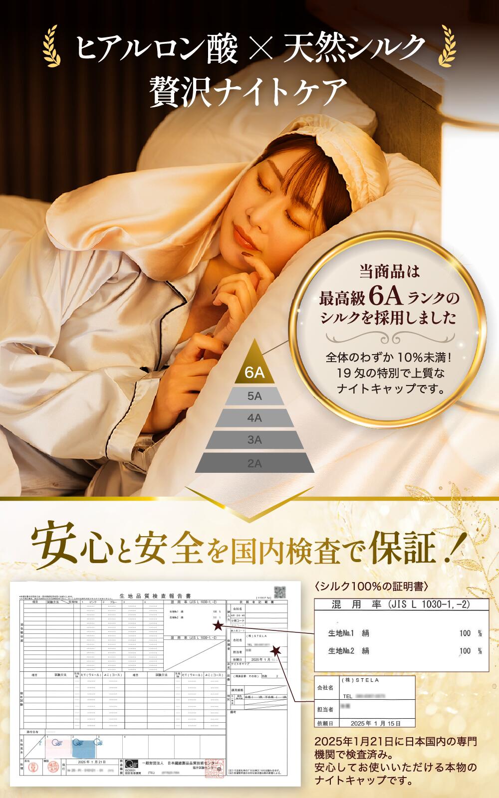 シルク品質検査およびホルムアルデヒド検査に合格しており、毎日使うものだからこそ安心してご使用いただけます。
