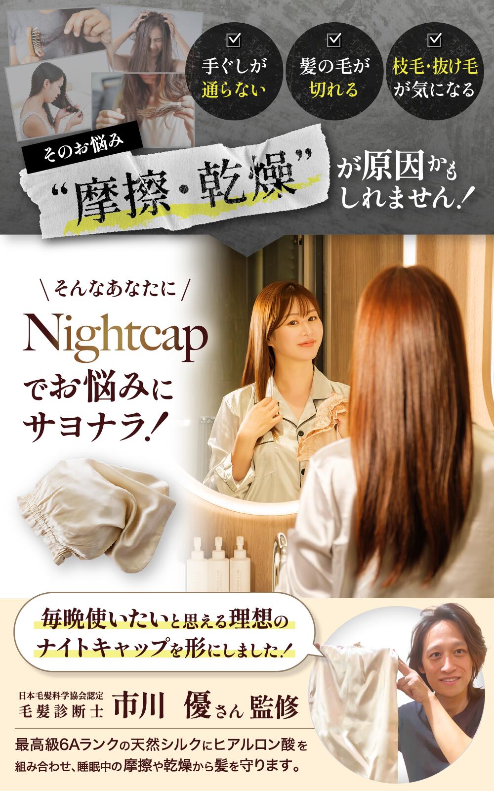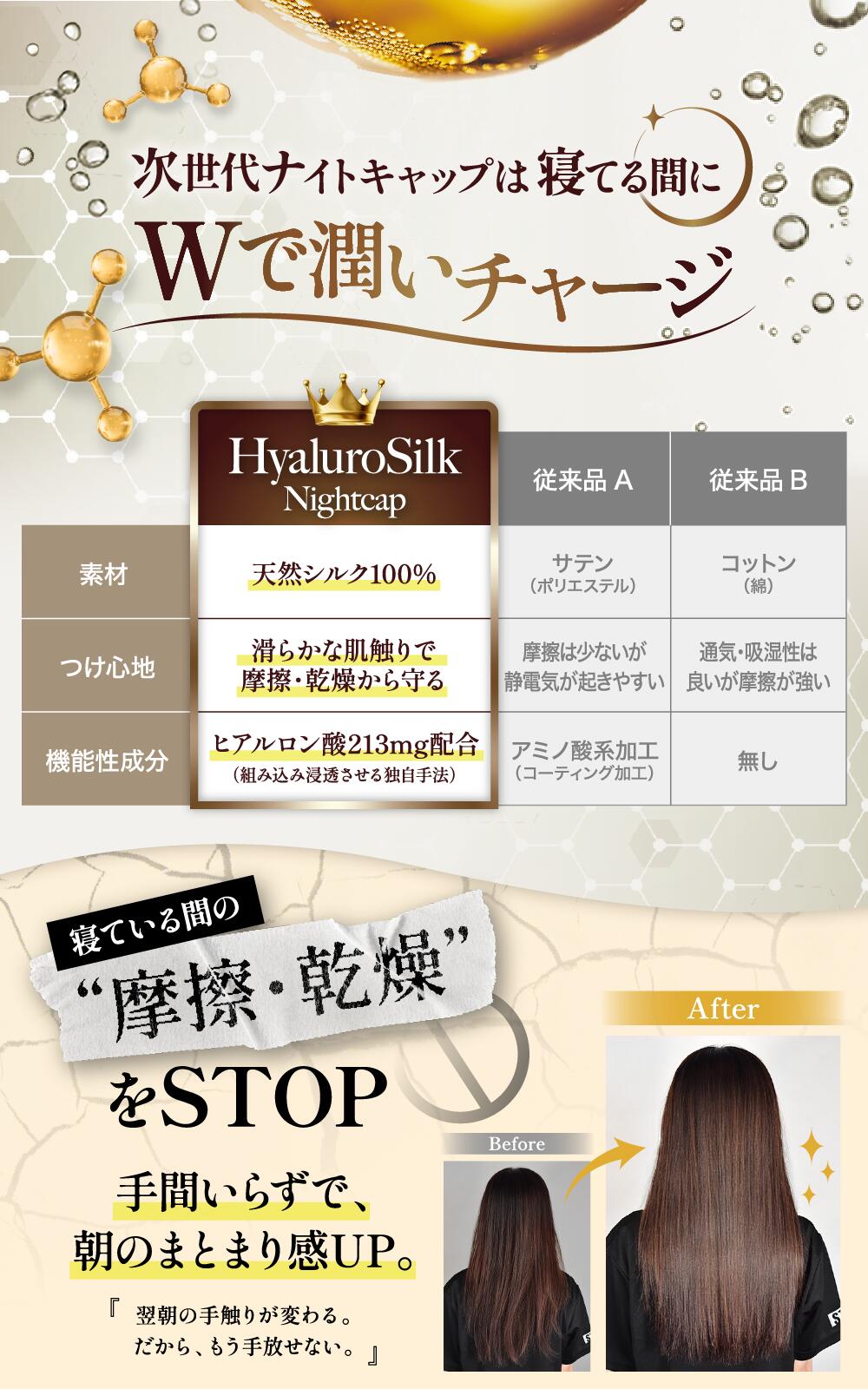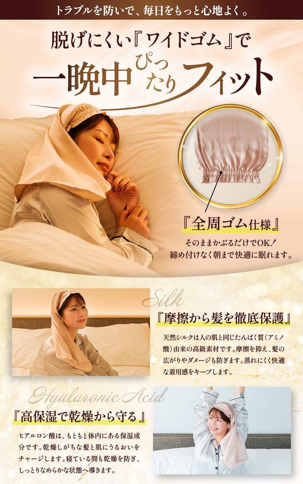 【就寝時の摩擦と乾燥から髪を守る、シルクナイトケア】