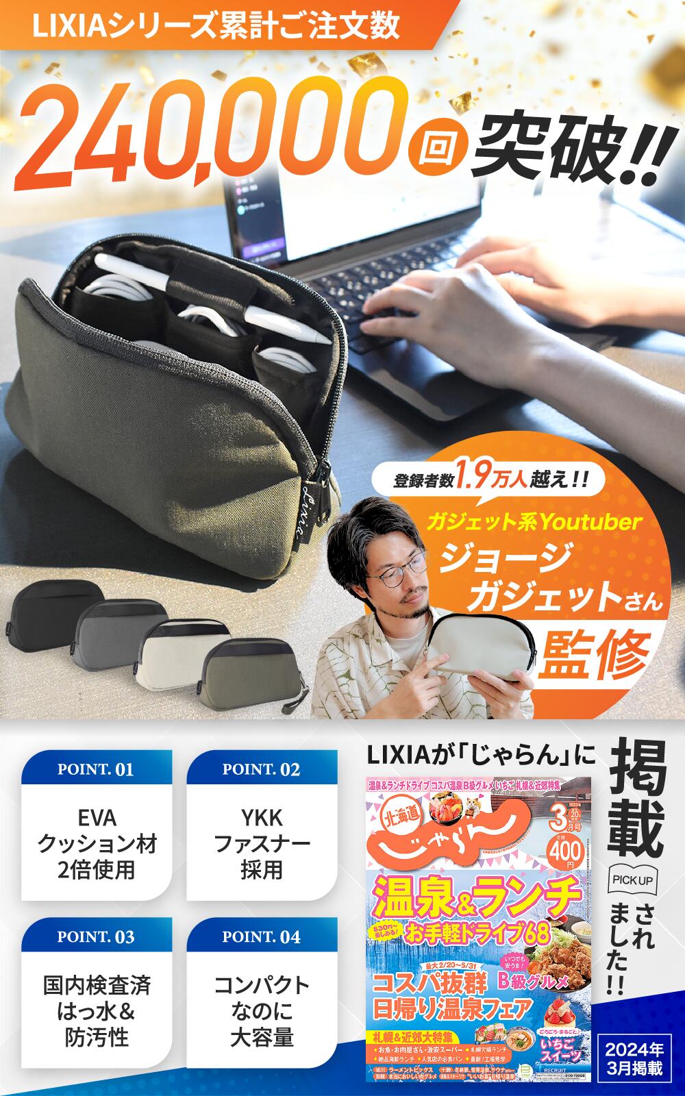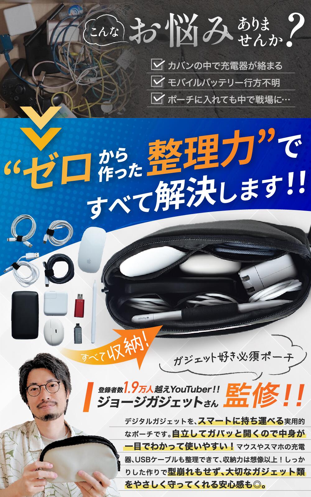 見た目以上の収納力で、ケーブル×3・充電器・スマホスタンド・マウスまで収納可能。リュックやトートにもすっきり収まるスマートフォルム。