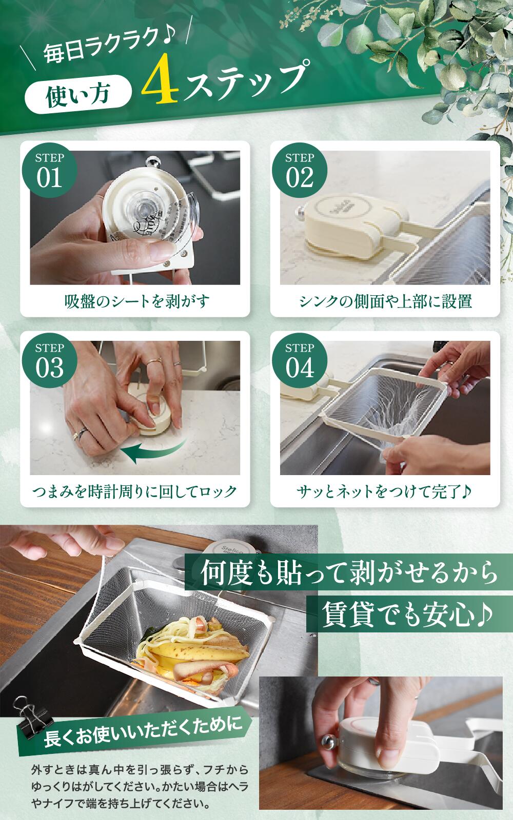 一人暮らしからファミリー世帯まで使いやすく、賃貸住宅でも設置しやすいキッチン便利グッズ。三角コーナーを置かずに、生ゴミ処理をもっと清潔・快適にしたい方におすすめです。