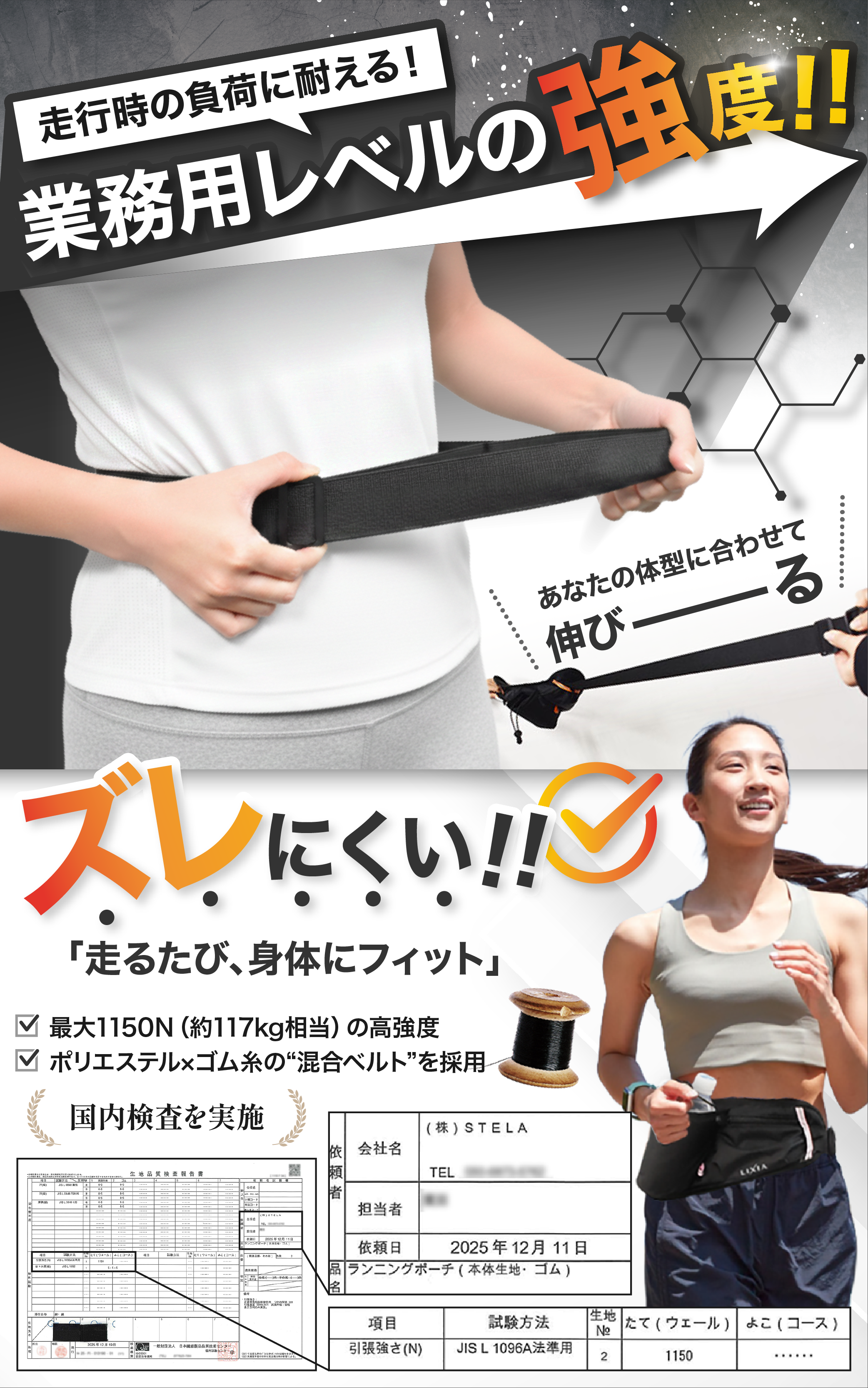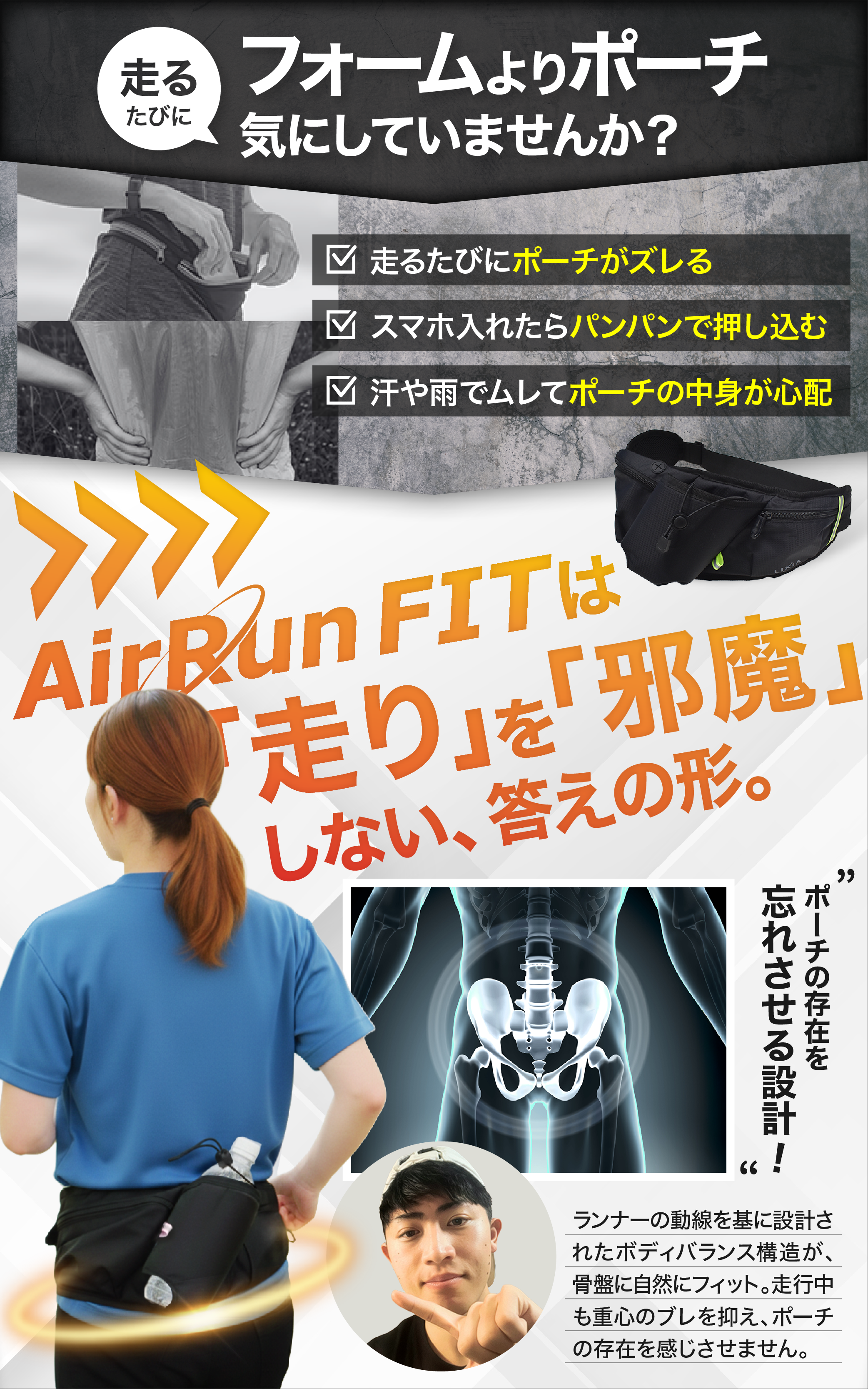 揺れない装着感で、走りに集中できるランニングポーチ。軽量設計とフィット構造により、快適なランニングをサポートします。