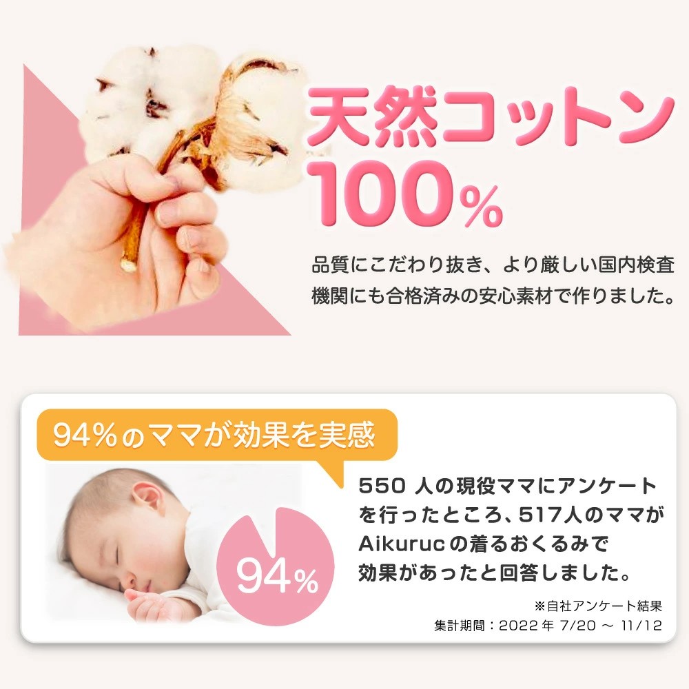 【天然コットン100%】天然コットン100%の素材で出来ており、ホルムアルデヒド国内試験にも合格済み。蛍光剤と漂白剤などの有毒な染料が一切ありませんので、赤ちゃんの肌に直接触れたり、赤ちゃんがお口に入れても健康被害がありません。